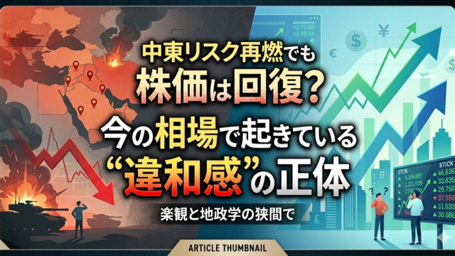 中東情勢の悪化とホルムズ海峡封鎖にもかかわらず、日本株が回復している理由を解説。株価と実体経済のズレ、今後の原油高・インフレリスク、投資家が取るべき戦略をわかりやすく解説します。